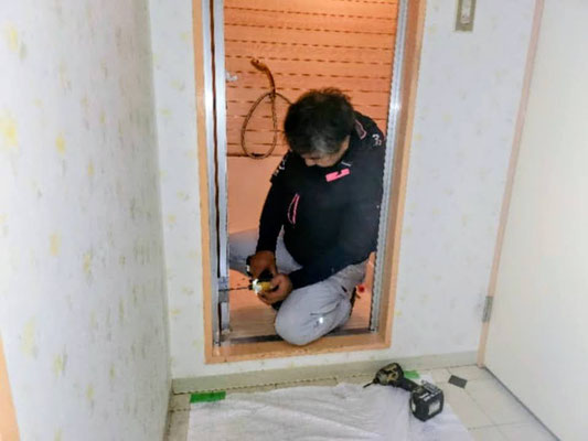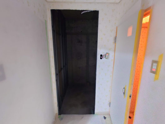 分譲マンションですのでエレベーターなどを共用部を養生してお風呂を解体をしました。